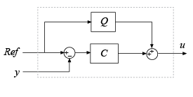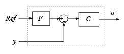 В параллельной форме PID-контроллер с двумя степенями свободы может быть эквивалентно смоделирован следующей блок-схемой, где C является PID-контроллером с одной степенью свободы, а F является предварительным фильтром опорного сигнала.