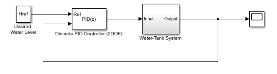 Блок дискретного контроллера PID (2DOF) реализует двухстепенный контроллер PID (PID, PI или PD). Блок идентичен блоку контроллера PID (2DOF) с параметром временной области, установленным на Discrete-time.