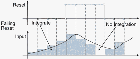 falling - сбрасывает состояние, когда сигнал сброса имеет задний фронт. Например, на этом рисунке показано влияние падающего триггера сброса на обратную интеграцию Euler.