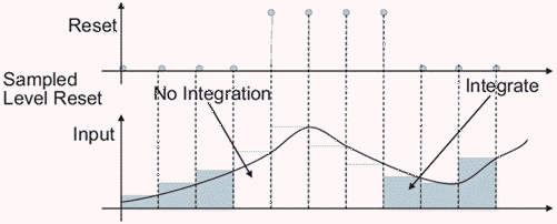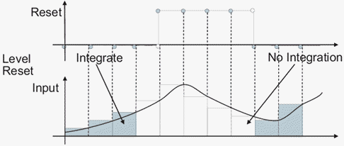 sampled level - сбрасывает выходной сигнал в исходное состояние, когда сигнал сброса ненулевой. Например, на этом рисунке показано влияние выборочного триггера сброса уровня на обратную интеграцию Euler.