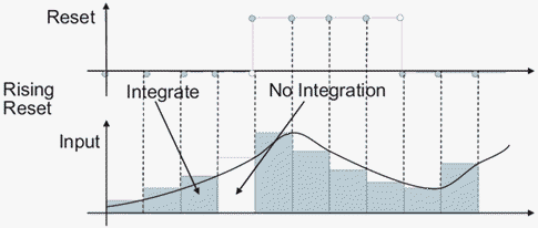 either - Сброс состояния при повышении или падении сигнала сброса. Например, на следующем рисунке показано влияние триггера сброса на обратную интеграцию Euler.