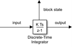Этот блок может интегрировать или накапливать сигнал, используя прямой Эйлер, обратный Эйлер или трапециевидный метод. Предположим, что u - вход, y - выходной сигнал, и x - это государство. Для данного шага n, обновления Simulink y(n) и x(n+1). В режиме интеграции T - время выборки блока (дельта T в случае инициированного времени выборки). В режиме накопления, T = 1. Время выборки блока определяет, когда вычисляется выходной сигнал, но не значение выходного сигнала. K - значение коэффициента усиления. Фиксация значений в соответствии с верхним или нижним пределом.
