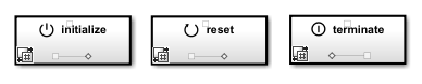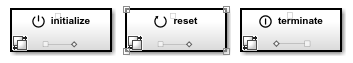 Порты событий Initialize и Terminate всегда являются безусловными, поскольку они управляют событиями инициализации и завершения ссылочной модели как для модели по умолчанию, так и для конкретного блока. Если в ссылочной модели определен функциональный блок Initialize, он соответствует явному событию инициализации.