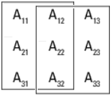 В дополнение к заданию для измерения секционирования значения 2, если для параметра «Ширина секции» задано значение 2 и смещение секции в -1Simulink использует два перекрывающихся раздела 3 на 2 для обработки.