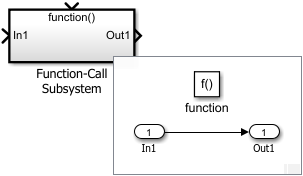 Блок Function-Call Subsystem является блоком Subsystem, предварительно сконфигурированным в качестве начальной точки для создания подсистемы, которая выполняется, когда порт ввода функционального вызова принимает событие function-call. Диаграмма Stateflow ®, блок генератора вызовов функций, блок S-функций или блок пересечения совпадений могут обеспечивать события вызова функций. См. Использование подсистем вызова функций.