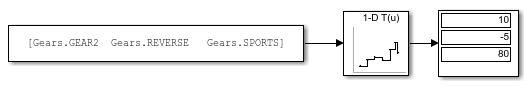 Моделирование создает вектор [10 -5 80], которые соответствуют GEAR2, REVERSE, и SPORTS.