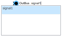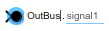 При вставке блока Out Bus Element метка блока заполняется значениями по умолчанию. Метка состоит из двух интерактивных текстовых полей: имя порта и элемент шины. Чтобы изменить имя порта, связанного с блоком, измените первое текстовое поле в метке, щелкнув текст.