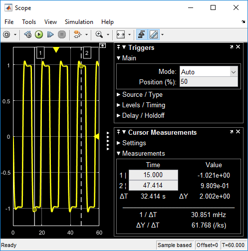 Блоки Simulink ® Scope и DSP System Toolbox™ Time Scope отображают сигналы временной области.