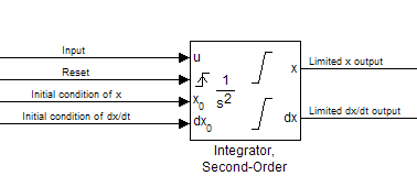 При моделировании системы второго порядка может потребоваться ограничить состояния блоков. Например, движение поршня внутри цилиндра регулируется вторым законом Ньютона и имеет ограничения на положение поршня (x). С помощью блока интегратора второго порядка можно ограничить независимые друг от друга состояния x и dx/dt. Можно даже изменить пределы во время моделирования; однако нельзя изменить, ограничены ли эти состояния. Важное правило, которому следует следовать, заключается в том, что верхний предел должен быть строго больше соответствующего нижнего предела.