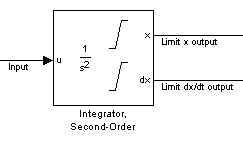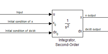 где u - вход в систему. Поэтому блок является динамической системой с двумя непрерывными состояниями: x и dx/dt.