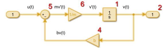 В следующей модели сначала запускается выход блока интегратора, а затем цикл блоков, подключенных к входу блока интегратора. Пропущенные номера выполнения в последовательности обычно обусловлены скрытыми блоками буфера.