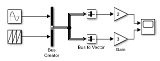 Преобразование сигналов виртуальной шины в векторные сигналы путем добавления блоков Bus to Vector