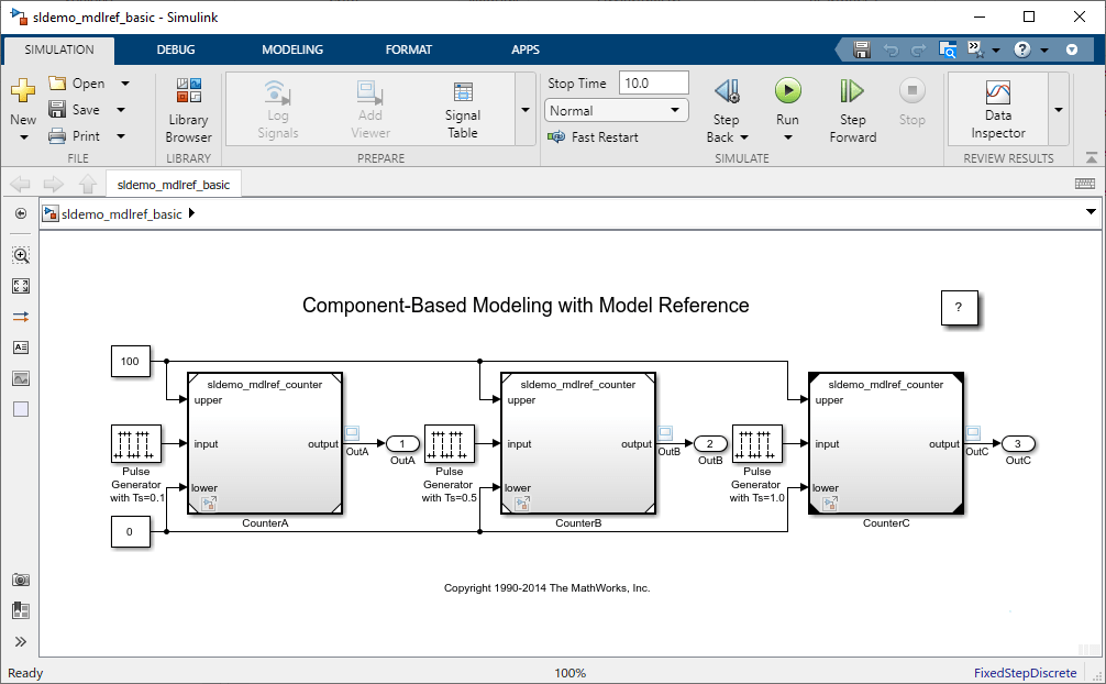 Редактор Simulink - это инструмент для построения моделей. Помимо стандартных методов работы с диаграммами в редакторе векторной графики, редактор предоставляет ярлыки, которые помогают добавлять и соединять блоки. Редактор Simulink также предоставляет доступ к инструментам, необходимым для выполнения технических операций, таких как импорт данных, моделирование модели и анализ производительности модели.