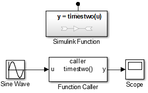 При вызове функции с использованием блока Function Caller параметр Function prototype в блоке Function Caller должен точно соответствовать интерфейсу функции, указанному в блоке Simulink Function. Это совпадение включает имя функции и имена входных и выходных аргументов. Например, блок Simulink Function и блок Function Caller используют имена аргументов u и y.