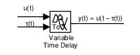 В этом режиме блок имеет вход данных, вход временной задержки и выход данных. (Описание порядка портов для различных ориентаций блоков см. в разделе Расположение порта после поворота или разворота.) Выходной сигнал на текущем шаге времени равен значению его ввода данных на предыдущем шаге времени. Этот временной шаг представляет собой текущее время моделирования минус время задержки, заданное вводом временной задержки.