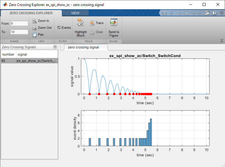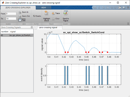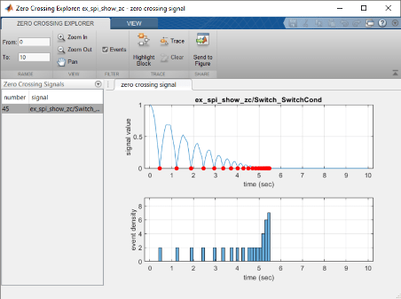 Выберите Пересечение нуля (Zero Crossing) в разделе Обзор (Explore) панели инструментов Профилировщика решателя (Solver Profiler).