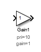 Формат атрибутов может быть любым текстом, имеющим встроенные имена параметров. Внедренное имя параметра - это имя параметра, которому предшествует %< и далее следуют >, например, %<priority>. Simulink отображает текст формата атрибутов под значком блока, заменяя имя каждого параметра соответствующим значением. Можно использовать символы канала строки (\n) для отображения каждого параметра в отдельной строке. Например, выберите блок усиления и введите следующую команду в командной строке MATLAB: