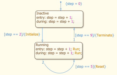 Inactive entry: step = step + 1; during: step = step + 1;