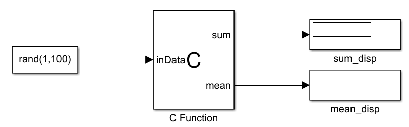 В следующих примерах используются блоки C Function для вычисления суммы и среднего значения входных данных.