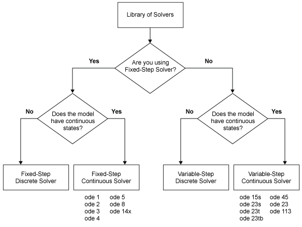 Эта диаграмма обеспечивает широкую классификацию решателей в библиотеке Simulink.