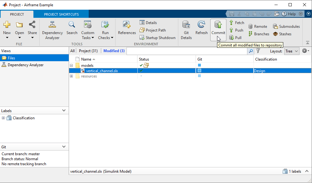 Если используется Git™ система управления версиями, это будет зафиксировано в локальном репозитории. Сведения о том, как зафиксировать удаленное хранилище, см. в разделе Извлечение и передача.