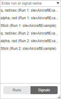 В списке прогонов выберите Run 2: slexAircraftExample.