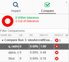 Разверните раскрывающийся список Сравнить с и выберите Run 3: slexAircraftExample.