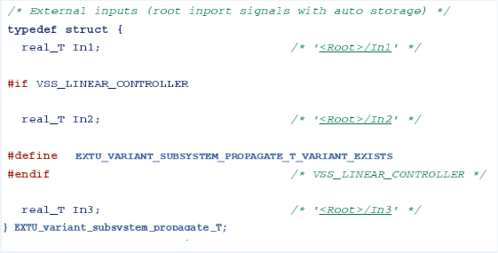 При создании кода для распространения условий без создания условий препроцессора неактивные блоки игнорируются. В этом примере входной порт In2 не отображается в сгенерированном коде.