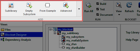 Конструктор блоков - это инструмент на основе проектов, который позволяет создавать, группировать и управлять пользовательскими блоками. После создания различных блоков можно добавлять тесты, документировать блоки и запускать проверки Model Advisor. Если модель содержит блоки S-функции или S-функции Builder, их можно построить с помощью интерфейса. Кроме того, можно импортировать существующие блоки и настроить проект конструктора блоков. С помощью конструктора блоков можно создавать новые блоки Subsystem, MATLAB System, S-function и S-function Builder.