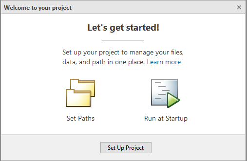 В диалоговом окне «Добро пожаловать в проект» нажмите кнопку «Настроить проект» для продолжения.
