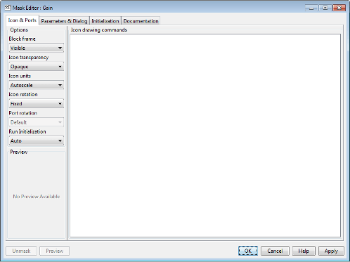 Если Simulink ® не может вычислить все команды на панели команд графического чертежа для создания значка, три вопросительных знака (? ? ?) появляются на маске.