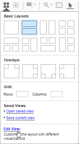 В Инспекторе расчетных данных можно выбрать одну из нескольких визуализаций, используемых для данных. Чтобы просмотреть доступные визуализации, откройте Галерею визуализации (Visualization Gallery), щелкнув Править представление (Edit View) в меню компоновки.