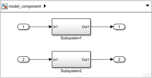 Рассмотрим следующую модель с двумя атомарными блоками подсистемы. Subsystem1 умножает свой вход на 2, в то время как Subsystem2 умножает свой вход на 4.