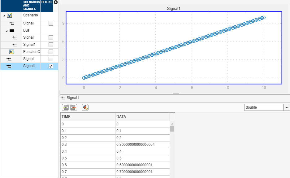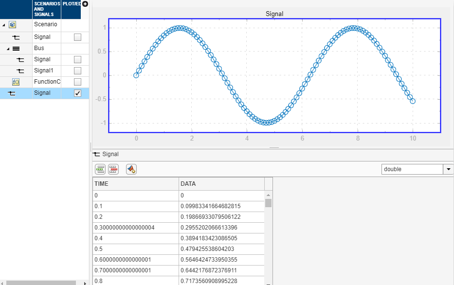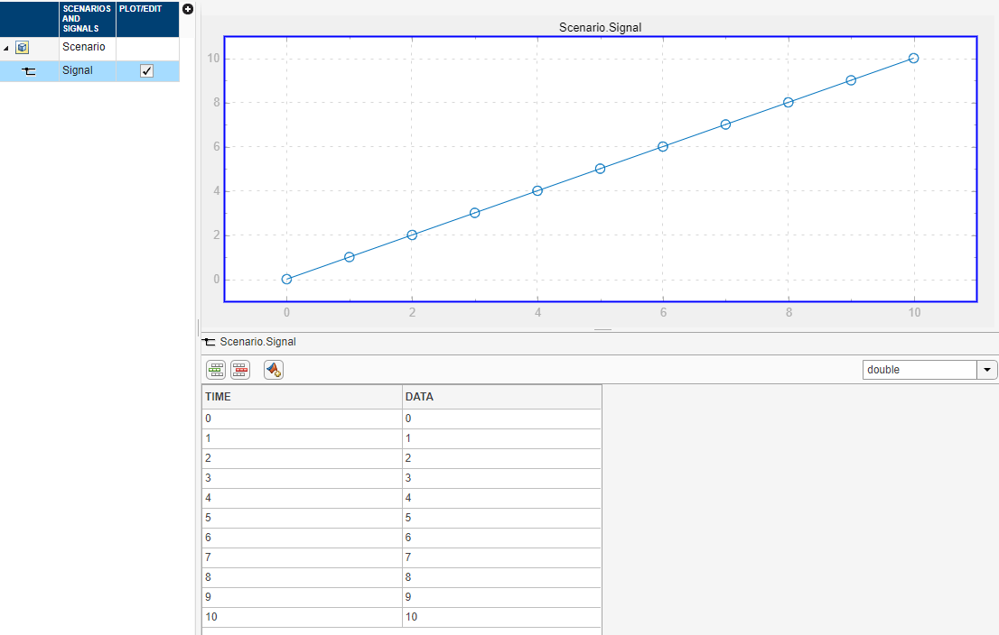 Данные сигнала можно заменить с помощью выражений MATLAB в любое время, независимо от способа создания исходных данных сигнала. Чтобы заменить данные сигнала, выберите этот сигнал в разделе Сценарии и сигналы, а затем нажмите кнопку замены ().