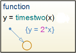 Дважды щелкните стрелку и замените ? с {y1 = timestwo(x1)}.