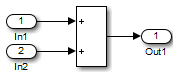 Например, этот блок подсистемы имеет два входных порта и один выходной порт.