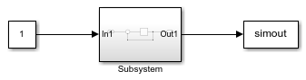Подсистема содержит два блока ввода (In1 и In2) и один блок исходящего порта (Out1), которые соответствуют портам в блоке подсистемы.