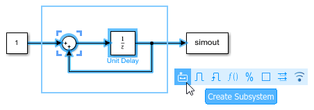 В редакторе Simulink перетащите рамку выбора, чтобы наметить подсистему, которую требуется создать, и выберите тип подсистемы.