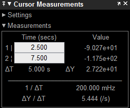 На панели Измерения (Measurements) отображаются измерения времени и значения.