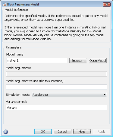 Блок Variant Model (для моделей, созданных в версиях ранее R2017b)