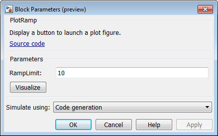 Присвойте имя объекту System PlotRamp и сохраните файл. Это имя становится заголовком диалогового окна блока.