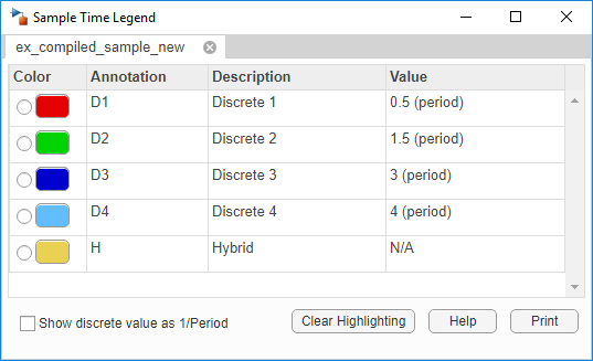 1.5000 0Легенда времени выборки показывает все частоты выборки, присутствующие в модели.