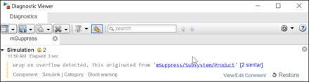 Чтобы просмотреть подавленную диагностику, на вкладке Отладка (Debug) щелкните Диагностика (Diagnostics) > Диспетчер подавления (Suppression Manager). Чтобы восстановить подавленную диагностику, выберите Восстановить. Диагностические подавления сохраняются вместе с моделью и сохраняются во всех сессиях.