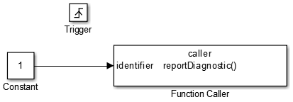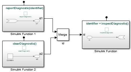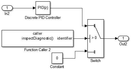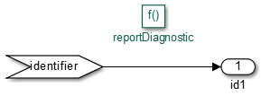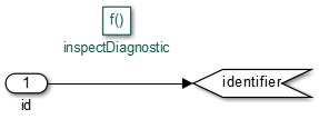 Реализация функции (Simulink Function) использует графический ввод (id) для наблюдения за последней диагностикой и передачи этого значения в качестве выходного аргумента (identifier) вызывающему абоненту. Графический вход - это сигнал со стороны сервера, который не является частью интерфейса сервера.