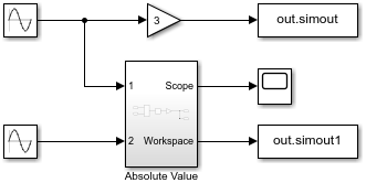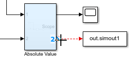 Добавьте блок «В рабочую область» в конце разорванного соединения. Блок «В рабочую область» выводит результаты в переменную в рабочей области MATLAB.