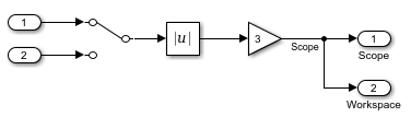 Для определенных блоков эти действия добавляют порт ввода или порт вывода. Например, порт появляется в подсистеме при подключении к ней линии. Другие блоки, добавляющие порты, включают блоки Bus Creator, Scope, Add и Product.