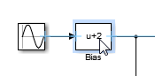 При перетаскивании блока на сигнальную линию блок соединяется с сигнальной линией на обоих концах. Отпустите блок, когда вы удовлетворены позицией.