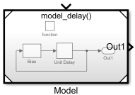 Код, генерируемый этой моделью, имеет две независимые функции, одна для функции задержки, а другая для квадратной функции.