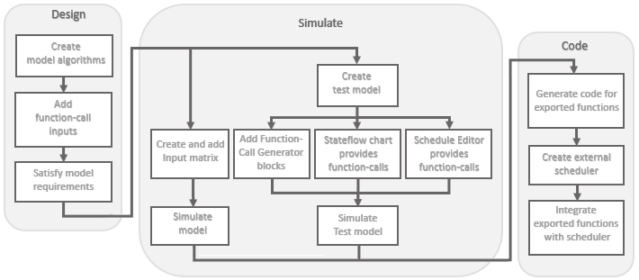 Возможность экспорта моделей функций доступна для моделей с асинхронными портами ввода вызовов функций. Эти модели используются главным образом в среде Simulink, где планировщик Simulink вызывает функции.