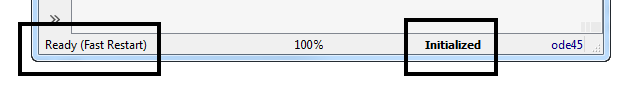 После завершения моделирования строка состояния показывает, что модель инициализируется при быстром перезапуске.